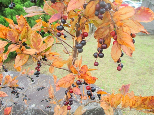 JUGEMテーマ:小学校生活のいろいろ 後期が始まりました。 学習発表会,そして卒業式へ向けて,準備を進めて行きます。 学校の庭の「ナツハゼ」の木に実が成り,周囲の木々も徐々に色づいてきています。