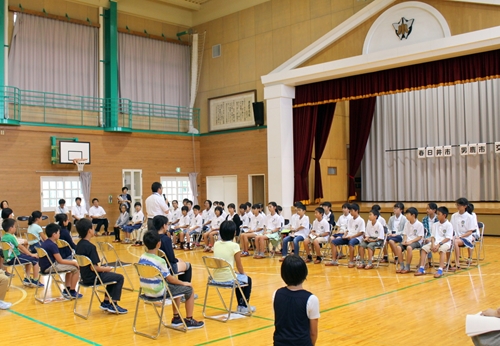 JUGEMテーマ:小学校生活のいろいろ 今日は5・6年生が学校に来て 8月6日に行われる,愛知県春日井市児童との交流会の準備をしていました。 当日行われるゲームのルールの確認や打ち合わせを,6年生の担任と一緒に行っていました。 みんな,春日井市のお友達が来るのを楽しみにしています。