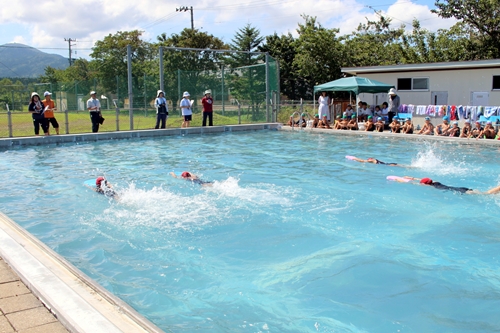 JUGEMテーマ:小学校生活のいろいろ 全校,校内水泳大会が行われました。 今年は,夏休み後の大会となり,水泳の授業や夏休み中の自主練習の成果が十分出せた大会となりました。 どの子どもたちも,自分の力の向上を実感できたようです。