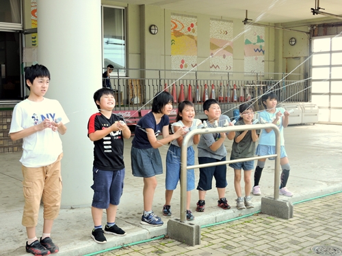 JUGEMテーマ:小学校生活のいろいろ 男鹿も,「梅雨明け?」と思えるほど,太陽が出て暑い一日になりました。 5時間には,日本の伝統遊びクラブの子どもたちが水遊びをしていました。 単純な水鉄砲でも,十分涼しくて楽しい夏の日を過ごすことができることを 体感していたようです。
