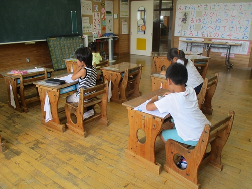 JUGEMテーマ:小学校生活のいろいろ 今日も数人の1年生たちが,自発的に夏休み学習会へ参加しています。 午前中は風もよく通るので,教室はエアコンが無くても比較的涼しく, 夏休みの宿題もどんどん進んでいるようです。