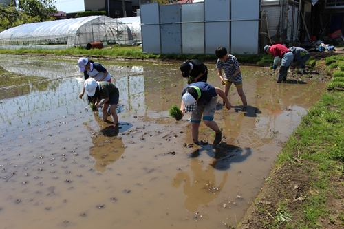 JUGEMテーマ:小学校生活のいろいろ 5年生が,学習田の田植えを行いました。 北陽小学校では伝統的な活動で,今年も,JAや地元の方々の協力を得ながら実施しました。 田んぼに入ることも田植えをすることも初めての子どもたちは 最初は随分おぼつかない様子でしたが,地域の方々の指導を受けながら少しずつ慣れていったようです。 今は殆どが,機械を使って植えますが,ちょっと前まではこのように大勢で田んぼに入って,手で植えていました。まっすぐ植えること,苗を垂直に植えること...