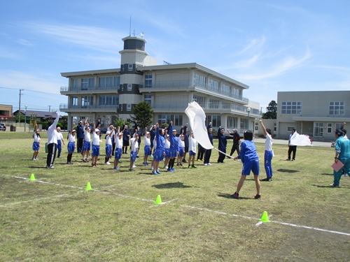 JUGEMテーマ:小学校生活のいろいろ 北陽小学校・男鹿北中学校の合同大運動会が 近年稀な晴天のもと,小学生と中学生が協力し合い応援し合って 盛会裏に終わりました。 赤組と白組の対決は,接戦の末,赤組が勝ちました。おめでとうございます。 負けた白組も力を出し切ったので,みんな満足そうでした。