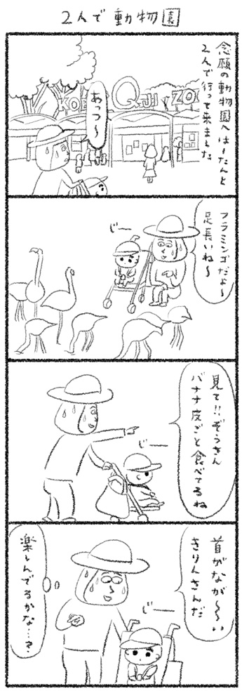 1歳1ヶ月 ぎょうざフリマというイベントで 似顔絵を描かせてもらいに行った時のことです。 小さなお子さんを連れたお客さんも何人か来ていて、 私も連れて来たら良かった〜〜!と何度思ったことか。 ひっきりなしに似顔絵を描かせてもらったので、 結果的にはお留守番してもらっていて良かった!! 帰って、はーたんの様子を聞くと 旦那「おとなしくしてたで〜〜。」 私「寂しそうにしてなかった??」 旦那「ぜんっぜん!!キッズコーナーとか連れてったり 楽しかったわ〜〜」 おおお〜〜ますます寂しさ漂う...