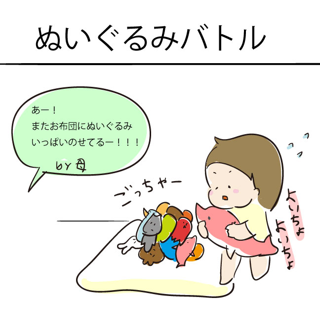育児ブログぷっぷくほっぺにようこそ! ぷっぷくの母、きょうこです。 私とぷっぷくの就寝時のやり取りを 四コマにしてみました〜★ 娘の乙女な説得に完敗です★ 親バカですよね〜 ちなみに ぬいぐるみパラダイスとなった お布団はこちらです もはや私が寝るスペース… 関連記事:娘に呼ばれて行って絶句! こちらもぬいぐるみにまつわる スペース問題でしたw 大人気! イラストブログの目次はこちら 記事が気に入ったらいいね!しよう...