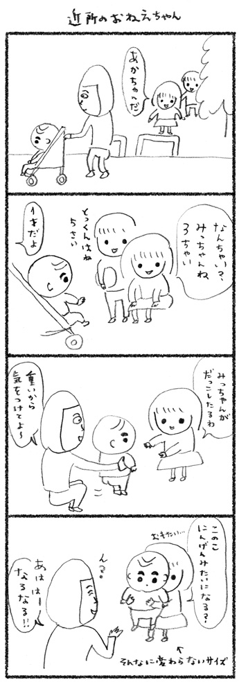 近所にこうやって遊んでくれようとする お兄ちゃんお姉ちゃんが少しづつ増えてきて、 本当にありがたうれしい…。 「にんげんみたいになったら」 もっともっと遊んでやってね! 1歳0ヶ月 UGEM:にこにこ育児絵日記 にほんブログ村 育児日記ランキングへ 育児ランキングへ