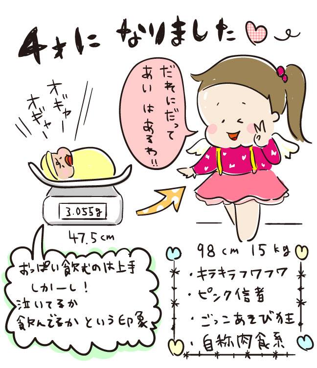 育児ブログぷっぷくほっぺにようこそ! ぷっぷくの母、きょうこです。 4年前の今日 お雛様を飾っている時に起きた 突然の破水で驚かせてくれました そしてするりと出てきてくれたね。 ぷっぷく、お誕生日おめでとう! ぷっぷくほっぺは皆様のおかげで無事4歳を迎えることができました。 4歳の娘の記録を少々… 98cm 15kg とにかく可愛いものが好き。 服は自分で選ぶ、髪もお化粧もネイルもすべて自分でやっています。 おかげでとんでもない風貌になることも多々… 極めつけは変なセリフw ...