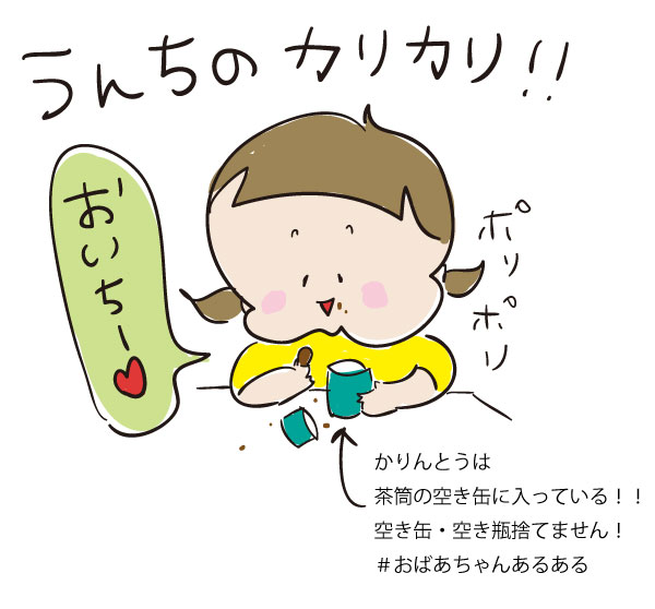 実家にて いろいろ与えられすぎて 「なんか食べるぅ~!」が 口癖になっている 腹ペコぷっぷくですが 先日かりんとうデビューを果たしました ひいおばあちゃんが かりんとうを渡すと… 「むむむ?」という顔をしたので わたしが思わず ぷっぷくも思っているであろう言葉を 口走ってしまいました… その言葉とは 「うんちみたいだねっ!」 その言葉を聞いた途端 「いらないっ!」と 突き返してきましたが 私が食べると ぷっぷくも恐る恐る口へ… あの絶妙な甘さ ...