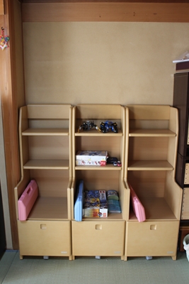 JUGEMテーマ:双子のパパ・ママ集まれ〜三つ子ばあばです。ジャーン! お披露目が遅くなりましたが、ランドセル置き用棚三組を下のように(本箱を動かした後に)設置しました。去年の年末に家具屋さんを3つまわり、決定し、1月早々に配達された物です。某学習デスクのメーカーのランドセルの棚なので将来、希望すれば机も同じメーカーで揃えることも可能です。そして何よりも配達の時に業者の方が組み立ててくれたので。。。こうした組み立ての苦手なママとばあばはホッとしました!■さっそく三つ子達それぞれが自分の持ち物を運ん...