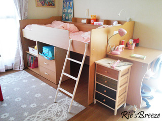 JUGEMテーマ:小学生の子育て 先日、つくばのニトリで買った、Wakoのベッドが届きました。 お姫様みたいなベッドが良い!と言って買いに行ったんだけど。 実物を見たら、システムベッドが欲しくなったみたいで。 この商品、キャンセル品(一旦納品されたんだけど、返品されたもの)で。 通常のものより、1万円ほどお安かったんですよ。 ちょっと傷があるんだけど、見えないところだし。 同じ商品なら安い方が良いですよね。 Wako、とっても気にいってて。 学校から帰って来たら、直ぐに荷物を移して。 夜も、...