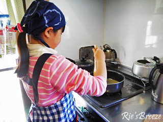 JUGEMテーマ:小学生の子育て Wakoが、前々から「作りたい!」と言っていた、フラップジャックを作りました。 イギリスではとってもポピュラーなお菓子だそう。 Wakoが読んでいる小説の主人公が作ったお菓子で、レシピも載っているんです。 それで、Wakoが作ると言い出して。 きちんとしたお菓子を作るのは初めてだったけれど、とっても美味しく出来ました♪ ブロックバターを切るのに手こずっていましたけど。 初めての火を使った作業だったけれど、材料をしっかり溶かしていました。 エプロン姿もさまになってい...