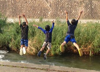 小学生男子のあつ〜い日は、近所の川で友達と遊ぶのが一番!川辺でスイカ割りをして盛り上がる。知らない間に人数増えてるし。なんでか飛び込める深いスポットを知っていて、ひたすら回転ジャンプ。ケタケタ笑いながら、あっち行ったりこっち行ったり‥。母達も暑〜いけど、汗だくで見守りながらおしゃべり。幼稚園からの友達って、なんかいいなぁ。この後夜更け(?!)までピザパーティー^^。夏休みだから、こんな日もありやね♪JUGEMテーマ:小学生の子育て