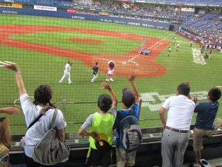 初、京セラドームへ!オリックスファンの友達とソフトバンクvsオリックス戦を観戦して来ました。最近タイガースよりソフトバンクファンになってきつつあるRは、柳田選手の思い切りのいいスイングを生で見て感激!!涼しくて快適に観戦できるし、なにより内野自由席でも選手が近くに見えます。試合後にこの日ホームランを打ったオリックスの選手が徒歩でぐるりと1周。わ〜いと手を振るRたち。なんか、内輪の雰囲気で、ゆる〜くていい感じ。試合後はトリックアートの所で写真を撮って、大満足のRたちでした。^^JUGEMテーマ:小学...