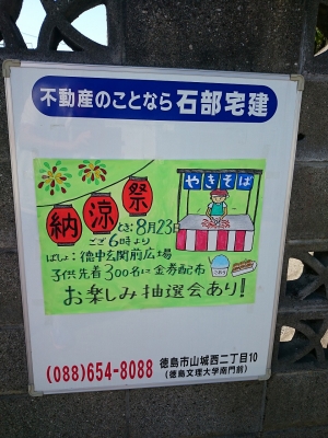 日曜日に 徳島中学で開催された 助任地区の 納涼祭に行きました。 私、出店が大好きです。 しかも、こういう地域のお祭りは 価格も安い。 息子が 『次はコレ、その次はアレ』って 言っても 低価格なんで ドンと来いw 夏の終わりを告げる納涼祭でした。 徳島文理大学の学生さんに お部屋を ご紹介して30年 地域の皆様に支えられ、おかげさまで 石部宅建は 来年で創業30周年を 迎えます。 にほんブログ村 &n...