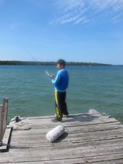 この夏の思い出Dおじさんからプレゼントしてもらった釣り竿。Rにとって初めてのマイ釣り竿に大喜び♡リールもついていて、バスやパイク釣り用らしいです。この夏はDおじさんと何回も釣りに出かけたR。この日はヒューロン湖でボート釣り中!Minneowという小さな魚をえさにして、Perchを釣ります。Perch(パーチ)がたくさん釣れました!おじさんがさばいて、グランマがフライにしてくれます。白身魚で、タルタルソースをつけて食べると、とっても美味しいです〜。^^/