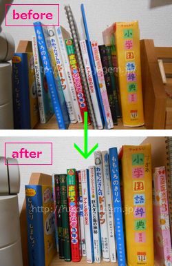 デジカメで撮った画像をパソコンに取り入れたら 二女の学習机を写した画像が数枚入っていました。 ん?私は撮った覚えがない・・・ どうやら、二女が自分で片づけた時のBefore&After を撮っていたらしい。 ふふ、可愛いなあ、と親バカで申し訳ありませんが、 せっかくなのでちょっとご紹介(^∇^) (文字入れなどの加工は私がしました) そういえば、この前黙々と机に向かって立って片づけてたけど、 こんなことしてたのね。 「自分で片づけようって決めてできたから、嬉しくて撮った。 前も...