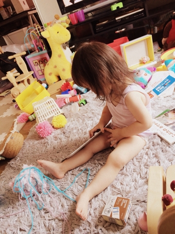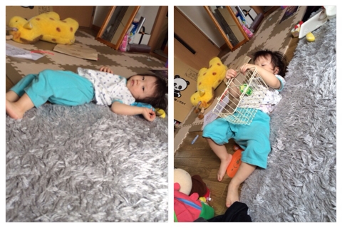駆け足かつ手短かですみません。 先週の金曜日の日記です。 朝からやる気無さげなこちゃるさん。 床の上をごろごろ転がっていたかと思うと近くにあったおままごとの野菜入れをお腹に乗せて寝転んだままポイポイ投げたりもっかい入れたりと遊んでいました。 …どんだけめんどくさいの! 毎週金曜日はスイミングの日。 スイミングの後はいつもごほうびにパックジュースを飲ませてあげていますが、毎回準備してる段階で高確率で見つかります。 …今日もバッグに入れたのを見つけて「飲みたい」と要求が&hellip...