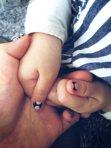昨日はご機嫌最悪のまま半ば疲れ果てて寝落ちしていたこちゃるさん。 服も昨日のまんまですが^^; 朝起きてからもまだご機嫌イマイチ?って感じだったので親指の爪に私の使い残しの(笑)ネイルシールを貼ってあげました。 …ら、これがこちゃるさんにドハマりしたらしく、大喜びからの一気にテンションあげあげに(笑) やーやっぱ女の子ですね〜。 ただこちゃるさん、爪が小さ過ぎて親指くらいにしかシール貼れないんですけどね…。 (そしてすぐ取れるので取れた時がまためんどくさい←キ...