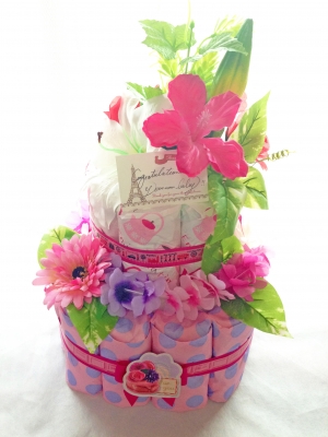 Name: masakoさん Baby:たまきちゃん9ヶ月 コメント 1段で注文したのにボリュームがあって ビックリ!! 小物の可愛さとゴージャスなお花で、とっても 素敵なオムツケーキに仕上がっていました。 プレゼントをした友人には 「初めてもらった!華やかで感激した!」 と言ってもらえて渡す方もとっても嬉しかった! NAOちゃんありがとう。 可愛い写真を有り難うございました♡ 元気で健やかに 成長されますようお祈りします お店はこちらから・・・ cake gift M...