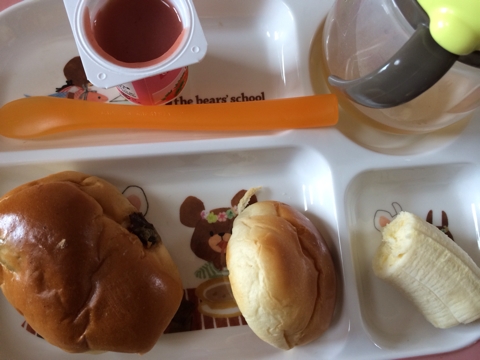 ☆離乳食313日目☆ ■1回目■ ・ロールパン:半個 ・レーズンロール:1個 ・バナナ ・ベビーダノン(いちご):1個(45g) ・麦茶 こちゃるさんとうとうダノン一口も食べなくなっちゃいました;; イチゴ味がいやなのかなあ… 食べないなら食べないでもいいんだけど…今週分買っちゃったのにな(笑) ■2回目■ ・おかかのふりかけごはん ・にんじんとチーズのポテトお焼き ・高野豆腐の卵とじ ・バナナ ・麦茶 スプーンにご飯乗せて食べさせようとしたら… 何故かおやき乗っけてくれた...