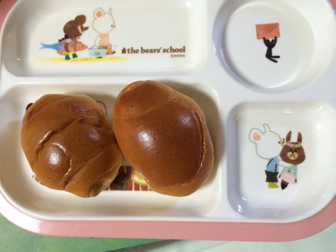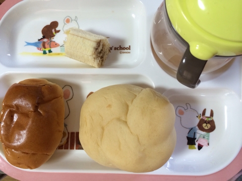 ☆離乳食338日目☆ ■1回目■ ・フレンチトースト ・牛乳 ■2回目■ ・ツナとほうれん草のクリームパスタ ・豆腐とポテトのコロッケ ・麦茶 …やっぱなんか見た目が!!!悪い!!!;; でもこちゃるさんはよく食べてくれるのでありがたいです; ■3回目■ ・外食(お子さまランチ) (ごはん、ハンバーグ、ゼリー、ポテトフライ、ウィンナー) ・麦茶 夕飯はココスに行ったので、お子様ランチ頼みました。 写真で見たときより実際来たら何か多かったー;; しかもハンバーグのソースが...