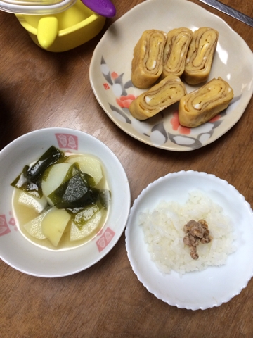 ☆離乳食352日目☆ ■1回目■ ・納豆ごはん ・味噌汁 (わかめ+ジャガイモ+味噌+かつお出汁) ・だし巻き卵 ・麦茶 パンよりご飯派なこちゃるさん。今日は朝からもりもり食べてました〜^^ でも卵焼きはいまいち?だったのか全然食べませんでした。 甘くて美味しかったのになあ。 ■2回目■ ・炒飯 (ごはん+ミックスベジタブル+卵+塩コショウ+しょうゆ) ・鶏肉の豆腐ハンバーグ ・麦茶 チャーハンは大人ご飯とほぼ同じ(味付けが少し薄いくらい)。 こちらもいっぱい食べてました^^ ...