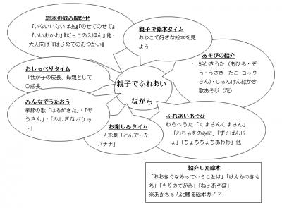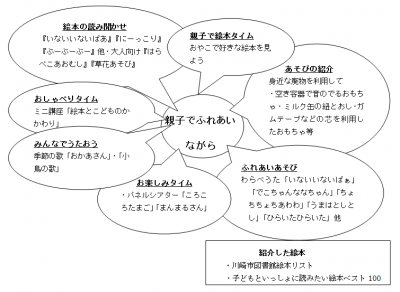 2015年度 0歳児の親子のための こころとこころをつなぐ 絵本の読み聞かせ 主催:川崎市男女共同参画センター(愛称 すくらむ21) 5月14日(木)の内容を紹介します。 ↓クリックして拡大 ―あそびの様子・活動をとおして― 今年度最初の、こころとこころをつなぐ「絵本のよみきかせ」のスタートです。どんな新しい出会いがあるのかな?胸をわくわくさせながら3ヶ月〜1歳4ヶ月の小さなお客様を迎えました。 0歳からの「絵本との出会い、どうしたらいいの?」難しく...