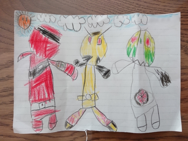 昨日は朝から大変な事態になったけど、 今日はそれを反省しているのか、 ちゃんと着替えて朝ご飯を食べてくれました。良かった。 ※昨日の記事▶朝から怒鳴るほどの大事件!! 雨の予報だったけど、降ってなかったので自転車でお迎えへ。 今日はお兄ちゃんのクラスは運動会の練習も兼ねて、 お外で忍者になりきって体を動かしたそうです♪ トンネルくぐったり、巧技台を渡ったり、楽しんだようでした。 お部屋では忍者の顔を描いたらしい。 運動会...