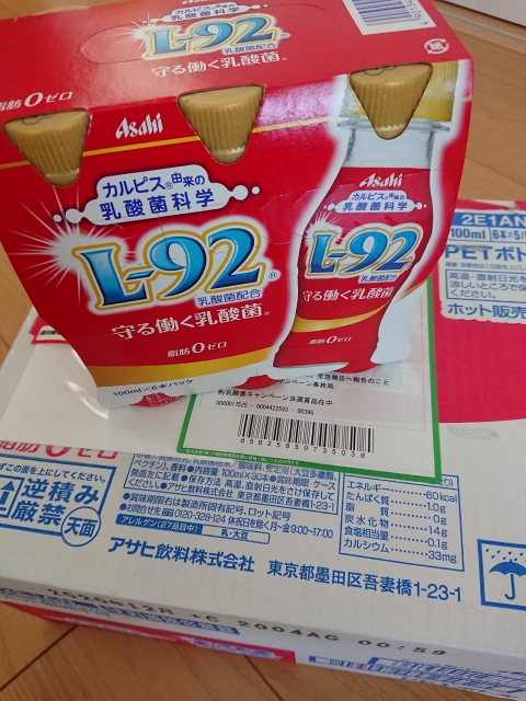 お兄ちゃんはアトピー体質なんです。 すぐにボリボリと全身かきむしっては、皮膚がボロボロに…。 皮膚科にも通っていますが、 それでも全然改善されなくて、毎日悩まされているんです。 ふと、 先日届いた懸賞当選品のこれ↓ 1ケース届いて、(アサヒ飲料さんありがとうございます!) L-92って何?って思いながらも私が飲んでたんですよね。 ちょっと調べてみたら、アレルギー体質に効果がある!って。 しかも アトピーに効きました...