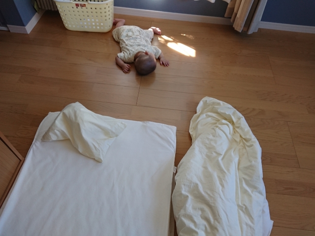 朝、なかなか起きない0歳弟。 パパとお兄ちゃんを送って、一通りの家事を終えて、 さ、起こしに行くか〜と様子を見に行くと 事件です。 布団から落ちてまで爆睡し続けてるー!!!(゚Д゚;) 寝ることに関しては本当に天才! お兄ちゃんなんていまだに添い寝でぎゅーっとされてないと寝ないのに!! (それはそれでかわいいけど、暑い季節、つらいんだよぉ…) &n...