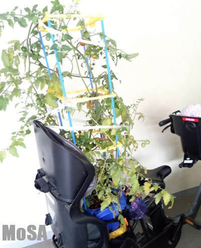 小学生のお子さんを持つ夏の風物詩って感じでしょうかね (´-ι_-`) 最近の小学校は、学校で利用する鉢や支柱は親が持っていって、もってかえる仕組みになったんですね… 私の小学生時代は、暑い中休み休み鉢を持って帰ったものですけど。 今年はぼうぼうに生えまくったミニトマトを自転車にのっけて持ち帰りました。 ちなみに去年は朝顔… 朝顔のときよりパワーアップしたミニトマト。 青い実がたわわに実ったミニトマトの鉢を自転車にくくり...