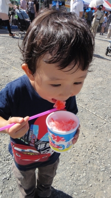 JUGEMテーマ:男の子育児今年は夫も一緒にジヤトコフェスタへ行きました。天気がよくて暑いくらい…。確か去年も暑かったような…。次男に、「綿菓子、ポテト、何食べたい?」と聞いたら「かき氷」。かき氷のお店を探すのに、ぐるっと一回りしちゃいました。いつ見ても、次男がかき氷を食べる様はおもしろいです。はじめて見たラムネ味。長男がやるのを見て、次男もボールすくいに挑戦。とろすぎて笑いました…。左手に持っていた容器の位置が、水面から上過ぎて、すくってもすぐに放り込めないという…(汗。ステージではキョウリュ...