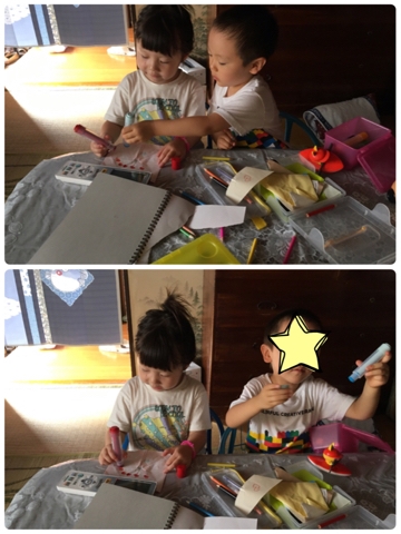 今日も朝から賑やかなお2人さん… 仲良くスタンプ&ペンを共有し合ってお絵描きお絵描き。 昨日からずーっとお絵描きしてます、この人たち(笑) さて、夏休み3日目の今日はお盆ってことでお墓参りへ。 まずは私の母方のおばあちゃんのお家(こちゃるさんにとってはひいおばあちゃん)へ。 堂々と1番良い席(おばあちゃんの席…)を陣取るこちゃる…。 いやーしかし田舎は癒される… なんていっても夏でも涼しいのが良いよね… ちびっ子た...