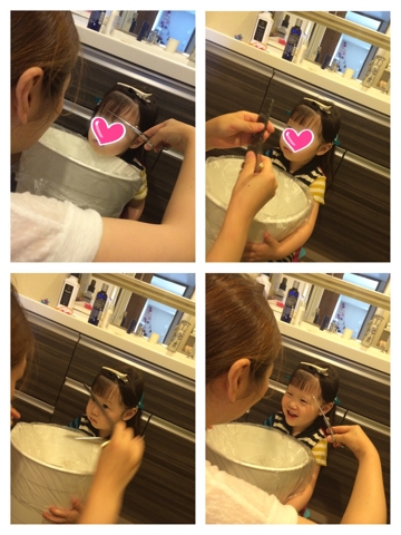 数日前から気になって仕方なかったこちゃるさんの伸び切った前髪を、我慢できずにすぱーーんと切ってやりました!!!! スッキリ☆ (パパめいやんは横で泣いていた…) さてさて。 今日は休日。天気も上々!ということでみんな揃ってピクニックに行く事に。 あられちゃんメガネ装着w 車に乗ってばびゅーんと。 万博記念公園に到着〜!!! ランチもそこそこに遊具にテンション上がってかけずり回るこちゃるさん。 それを追いかける親。 今日はちょっと天気が良過ぎて暑かったんでちょっと辛かったで...