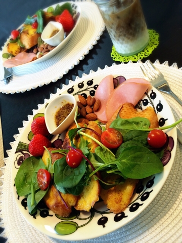 本日の休日ブランチ〜。 甘さ控えめフレンチトーストに、サラダのソースはハニーマスタードです。 朝からお腹いっぱいになってしまったw さてさて。 今日は午前中から皆で電車に乗ってお出かけ〜。 最近モモジュースお気に入りのこちゃるさん〜。 ところで今 阪急電車(京都線だけかな?)の車体が特別仕様のやつ出て来てますね〜。 どことなく蒔絵風で美しい…!! 私は見た事ないのですが、通勤で乗ってるめいやさん曰く夜になるとこの電車、車内ライトが金色?っぽい感じでこれも普通のとは違うらしい&he...