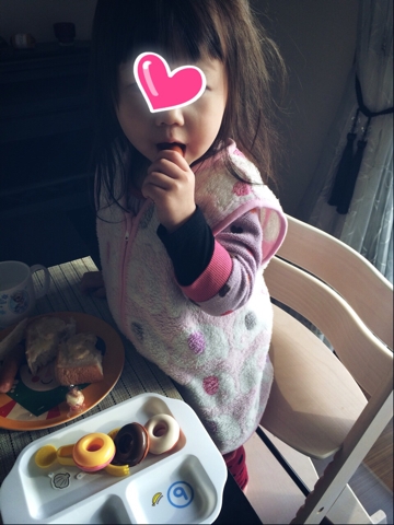 おや?何かこちゃるさん朝ご飯多い…と思ったらドーナツのおもちゃ並べてた。 どんだけ気に入ったの(笑) さてさて。 今日は午前中またまた私の歯医者さんの日でした。 今日は前回抜いた親知らずの箇所を抜糸してもらってくるよー;; 歯医者さん行く途中の車内で何度も「ママ見て〜!」ってしつこいから、信号待ちの時に振り返ったら全力で変顔して遊んでたw これは駐車場に停まった時…あんまやってると不細工になるよw 今日は歯医者さんのキッズルームに赤ちゃんがいたので一緒に遊んでたんですが、...