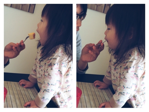 引き続き日付操作での過去日記いきますー! 今日は土曜日でパパめいやんお休み! なのでみんな揃ってのんびりブランチ〜♪ お休みの日は恒例のフレンチトースト☆ もぐもぐいっぱい食べてくれましたが、その直後にプリン… 賞味期限がギリギリで食べて欲しかったから出したけど、よく考えたら甘いものばっかりになってしまった…。 最近ハミガキ後のすすぎうがいを自分でしてるんですが、 踏み台使っても微妙に低いので首元がよく濡れて困ります。 何が困るってこのうがいが好きで何回も何回も延々やり...