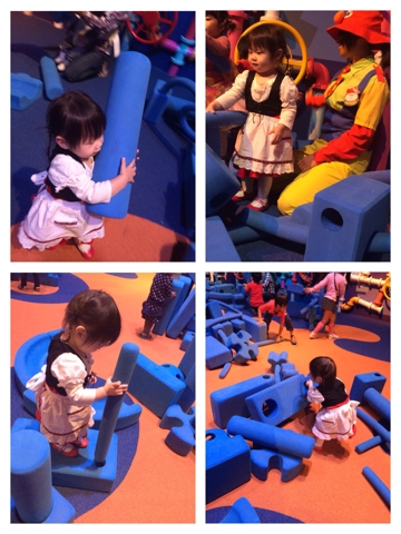 USJ後半行きます♪ メリーゴーランドを何とか諦めてもらった後、またユニバーサルワンダーランド内のセサミストリートエリアに。 セサミエリアは屋外と屋内と2つあるんですけど屋内の昼食食べたところにまた戻ってきました。 奥まで行くと結構色々こちゃるくらい小さい子でも遊べそうな物がたくさんあって、こちゃるさん大興奮! まずはソフトブロックで街を作るエリアに…。 一生懸命自分の身体くらいの大きさのブロックを抱えてはあちこちウロウロして組み立てたり、逆に壊したり楽しそうにしてました! ここにはキ...