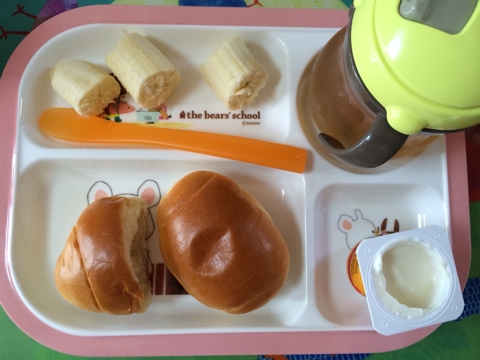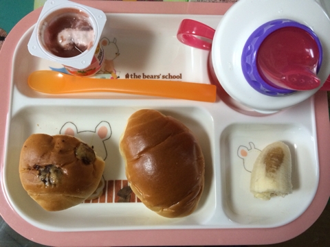 ☆離乳食322日目☆ ■1回目■ ・レーズンロール:1個 ・白パン:1個 ・バナナ ・麦茶 バナナ飽きたのかほとんど食べませんでした。 ■2回目■ ・お弁当 (ゴマと鮭のふりかけのアンパンマンおにぎり、チーズのせ豆腐ハンバーグ、高野豆腐の味噌出汁煮、カボチャサラダ(カボチャ+ツナ+ノンエッグマヨネーズ)、バナナ) ・麦茶 もらいもの (卵焼き、ミートボール) ※後述します ■3回目■ ・カレーライス ・豆腐ハンバーグ ・プチトマト ・麦茶 ほぼカレーライスのみですがw カレー...