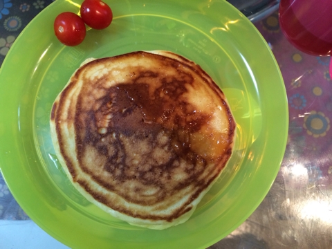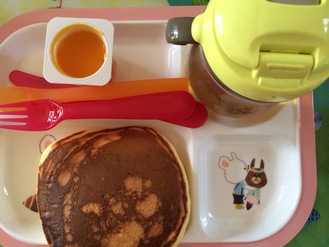 ☆離乳食303日目☆ ■1回目■ ・パンケーキ ・ベビーダノン(黄色の野菜):1個(45g) ・麦茶 写真見てお分かりのとおり…ちょ、ちょっと焦げました; そして焦げてるせいで苦かったのか食いつきもいまいちでした; ごめんこちゃる;;; でもフォークで刺すのは楽しい! ■2回目■ ・ごはん ・高野豆腐の卵とじ ・ベビー唐揚げ ・バナナ ・麦茶 でっかい口!!! ■3回目■ ・彩り野菜リゾットランチ(BF):90g+80g (彩り野菜のリゾット90g+とうふハンバーグ80g) ・ももとりんごのフルーツジ...