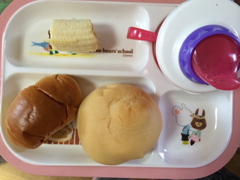 ☆離乳食314日目☆ ■1回目■ ・ロールパン:1個 ・レーズンロール:半個 ・バナナ ・ベビーダノン(いちご):1個(45g) ・麦茶 昨日買った100均のマグ、すごーく上手に飲めてるし洗うの楽だし買って良かったかも!! ただし遊び出すと傾けてこぼすのでその点が困りものです…。 あとやっぱダノン全然食べません; ■2回目■ ・洋風お子さまランチ(BF):90g+80g (彩り野菜のチキンリゾット90g+いわし団子のカレーシチュー80g) ・マンゴーともものフルーツジュレ:70g ・麦茶 ・胚芽パン お...