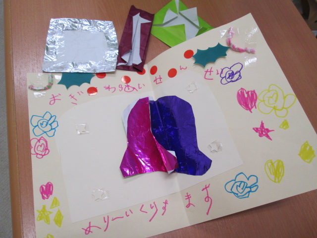 JUGEMテーマ:教育 JUGEMテーマ:幼児教育 こんにちは! 立川教室のおぎわらです(*^^*) 12月のレッスンスケジュールはこちら! 5歳クラスの女の子が、 レッスンの前に提出する宿題と一緒に、 こんな素敵な作品をプレゼントしてくれました! かわいいクリスマスカード!!! メダルも折り紙で折ったものが入っていて、お友達にもプレゼントしてくれました! 私はこの女の子を2歳の時からずっと担当しているので、 そんな...