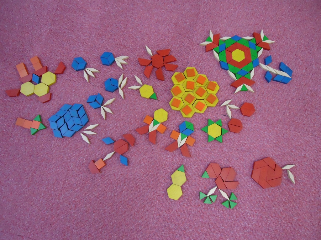JUGEMテーマ:幼児教育 こんにちは。八王子市の幼児教室コペル八王子中央教室です。 年長クラスの子たちのレッスン後にパターンブロックで遊んでいた時にケースに入っている全てのパターンブロックを使ってみようと言って作っていたのですが、あと少しになると作りたいものには足りなく感じた様子で欲しそうにしています。私も一緒に作っていたので自分で作ったものから渡すのは簡単ですが、どうするのかなと思って様子を見ていると「あっ。これを動かせばいいんだ。」と言って先に作っておいたものを変更して素敵に仕上げてい...