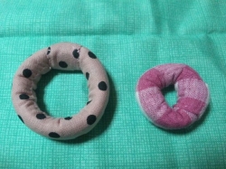 JUGEMテーマ:知育玩具 大好きな手芸で、ボランティアを考えています。 プレゼントすることで、なにかお役にたてないか...と。 作品の中心は、幼児向きの「 知育玩具 」ですから。 テーマは「 指先の動き 」として、 つかむ・つまむ・もちあげる・運ぶ・ひもに通すの練習です。 小さな手を意識して「 軽い 」ことを念頭に。 手作りの「 輪 」を追加準備中。 でも、できたての「 輪 」は〜シワが寄り、きれいな丸い形にはなりません。 しかし...アイロンもできない形なので... で、さらに小さい輪を用...