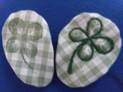 JUGEMテーマ:知育玩具 大好きな手芸をいかして、ささやかなボランティアをしています。 「 手作りの知育玩具 」を保育関連の場所へ、プレゼントするわけです。 そして少しでも主役の子供達に、親近感をもってもらうためにかわいいワンポイントも。 主に「 絵合わせフェルトカード 」の表側に。 テーマは指先の動きと集中力。 フェルトカードを裏返す( 指先の動き )と同じ模様を記憶する( 集中力 )こと。 よつ葉をイメージして、消しゴム版を彫りました。 葉脈も見えるように作ったのですが、染色して...
