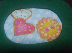 JUGEMテーマ:知育玩具 布と、ウォッシャブルフェルトで【 知育玩具 】を作っています。 集中力を促す遊びとして「 神経衰弱ゲーム 」をお勧めしていますが、幼児向きの物が無くて・・・ 「 絵合わせカード 」を用意しました。 子供達の好きなもようとして「 お菓子編 」で。 クリームサンドビスケットです。 表側の、フェルトカードのアップリケ( 風船 )も変更することに。 もっとかわいいものへ・・・とイメージアップしたくて、全部、解いてます。