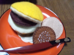 JUGEMテーマ:知育玩具 ウォッシャブルフェルトを使って【 知育玩具 】を作っています。 テーマは「 数 」と「 数え方 」です。 物によって「 単位 」と「 呼称 」が違うので・・・ 子供さん達に「 楽しい教材 」として、プレゼントしたいと思っています。 ひとさらにまとめた和菓子です。 どらやきは「 いっこ 」で、おせんべいは「 にまい 」です。 お菓子の種類で「 単位 」が変わる・・・ことに慣れてもらえれば、いいですね。
