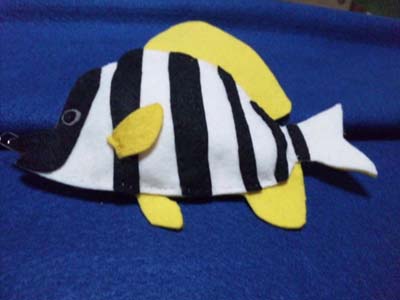 JUGEMテーマ:知育玩具 手芸が大好きです。 そして、プレゼントするのはもっと好きな私です。 テーマが【 知育玩具 】なので、 子供が汚しても洗える( 軽く押し洗いできる )ように考えて。 材料も「 ウォッシャブルフェルト 」を使っています。 この「 魚釣りゲーム 」は、 遊び方の説明が要らないゲームともいえますね。 誰でもかんたんに遊べますから。 画像は「 テングダイ 」です。 口元が極端に突き出ていること、シマ模様6本が特徴です。 ( 尾ビレが黄色い...