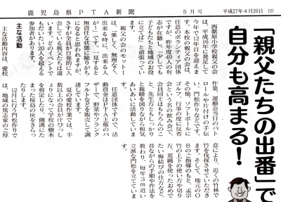 鹿児島県のPTA新聞をうちの子が持ち帰ってきたので、読んでみました。 なんだかとっても楽しそうなんですよ、西紫原小学校の親父の会が。 『本校の親父の会は、任意のボランティア団体ですが、昨年度49人の有志が在籍し・・・』 児童数は880人の学校です。 それで49人の会員。多い?少ない? 『親父の会のモットーは、「楽しく、無理なく、出来る時に、出来る人が!」です。』 素晴らしいね。 どのイベントでも20人以上の参加があるそう。 しかも、ソフトボールや反省会と言う名の飲み会・・・楽しそうだね。 ...
