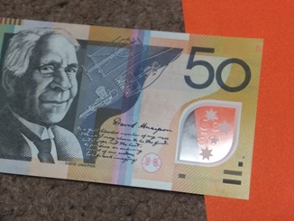 オーストラリアドルに両替してきました。つるつるとプラスティックみたいで、お札じゃないみたい。 そしてフィルムのように透明な部分も 新札なのですごくキレイだけど、しわくちゃになったらこの部分はどうなるんでしょう。 この顔がツボ v(≧▽≦)v 誰なのか知らないのだけれど・・・・・
